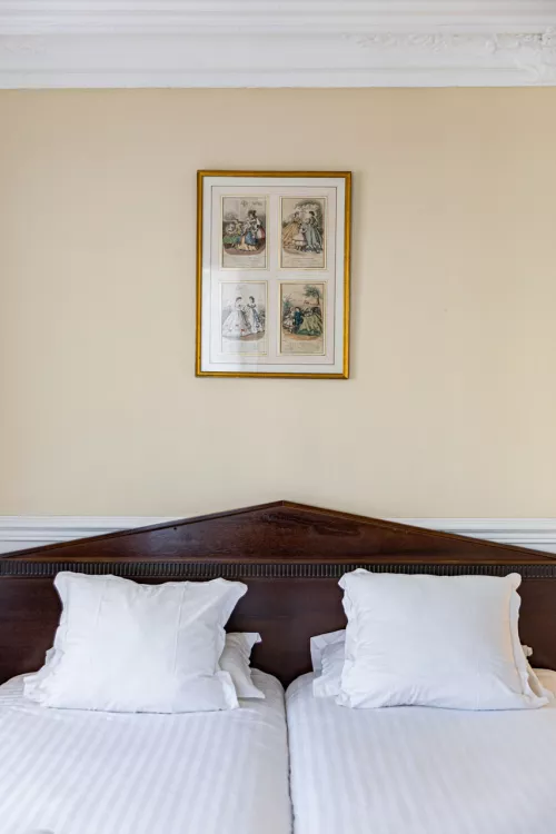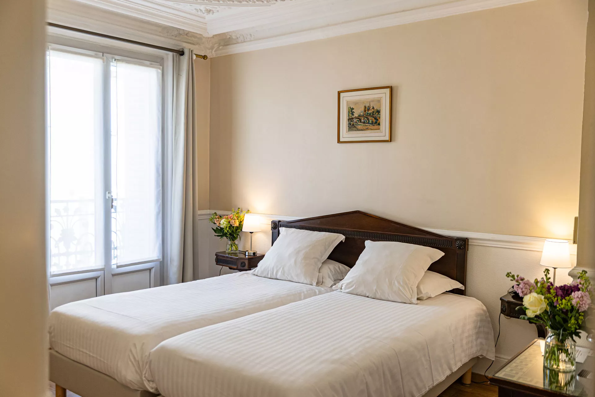 Discover our twin rooms, ideal for duo travelers looking for an optimized space with two separate beds for personalized comfort. Located in the heart of Paris, they offer a warm and refined atmosphere, perfect for a stay with friends or a business trip. Each room is bathed in natural light, featuring elegant furniture, high-quality bedding, and modern amenities designed for your well-being. Enjoy a peaceful setting, combining serenity and practicality, at Hotel Claude Bernard Saint-Germain, where comfort and elegance make your stay an unforgettable experience.